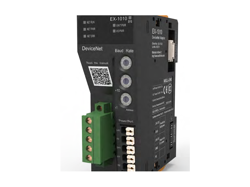 EX系列卡片式I/O模块具有尺寸小巧,结构紧凑,接线简单等特点。模块之间通过底部板对板连接器进行连接,并且 相邻模块之间设计有两侧卡扣进行互锁,抗震性能非常高,模块的稳定性非常高。以太网通讯接口设计为斜45度接口,可 以减少网线长期弯折对网口结构造成的应力,增加系统的可靠性。所有端子均采用采用免螺丝的接线端子,极大的减少现 场安装接线的工作量,节约安装时间。